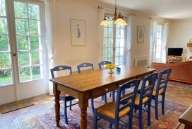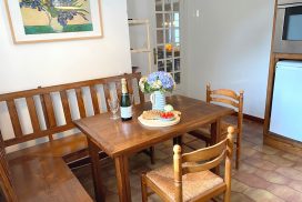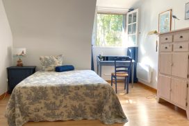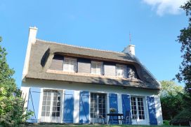Das reetgedeckte Haus bietet gehobenen Komfort und ist liebevoll mit bretonischen Möbeln eingerichtet. Um das Haus herum liegen drei Terrassen und einen sehr ausgedehnter Garten mit alten Bäumen, Sitzbänken und einer Schaukel.