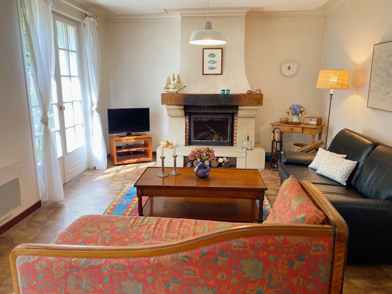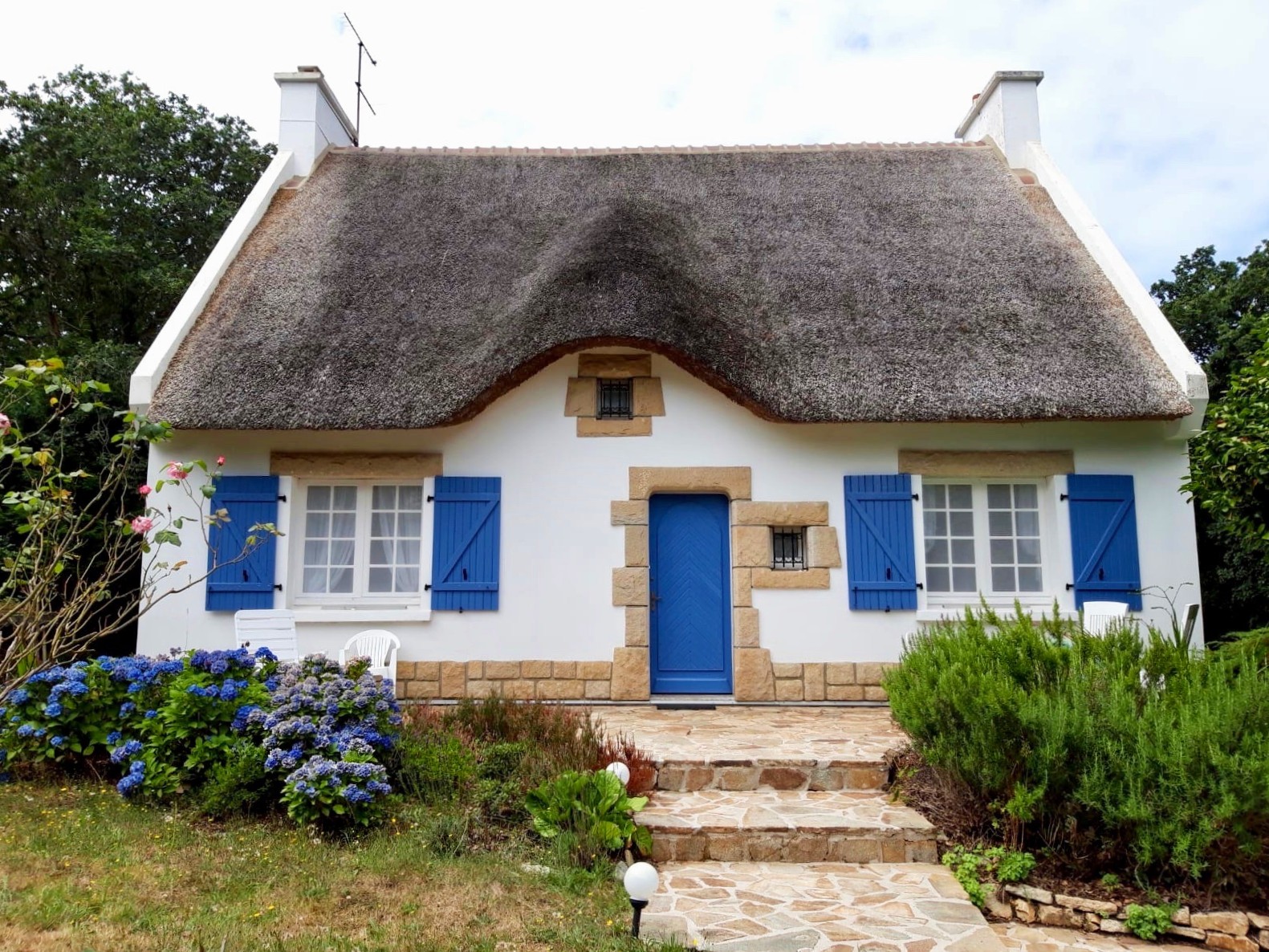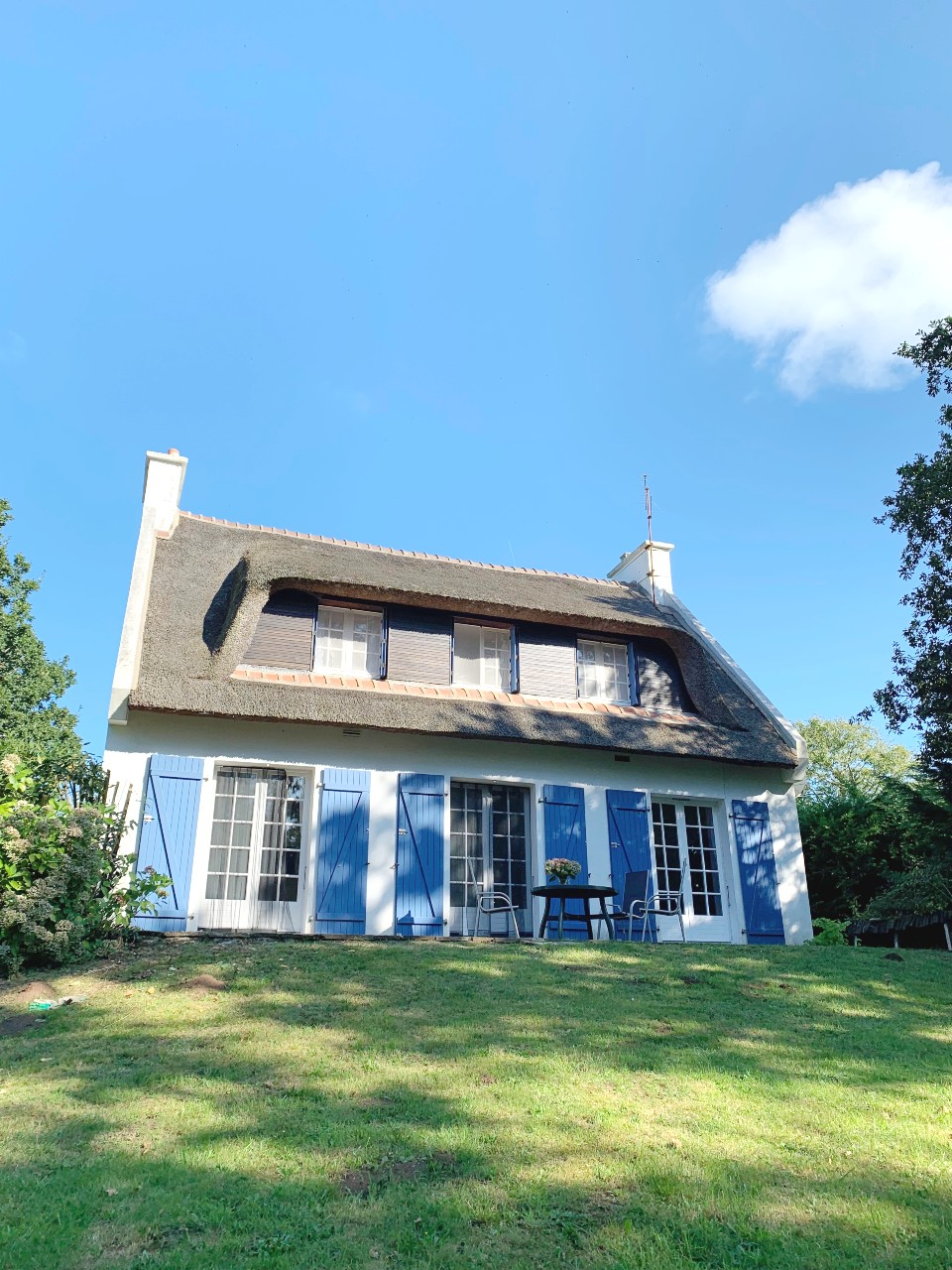 Das reetgedeckte Haus bietet gehobenen Komfort und ist liebevoll mit bretonischen Möbeln eingerichtet. Um das Haus herum liegen drei Terrassen und einen sehr ausgedehnter Garten mit alten Bäumen, Sitzbänken und einer Schaukel.