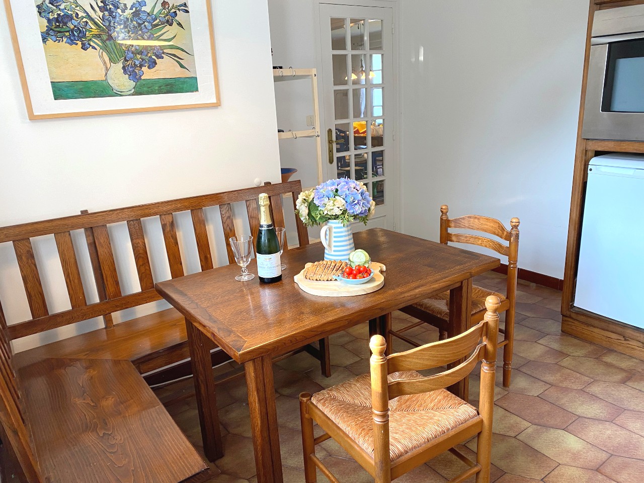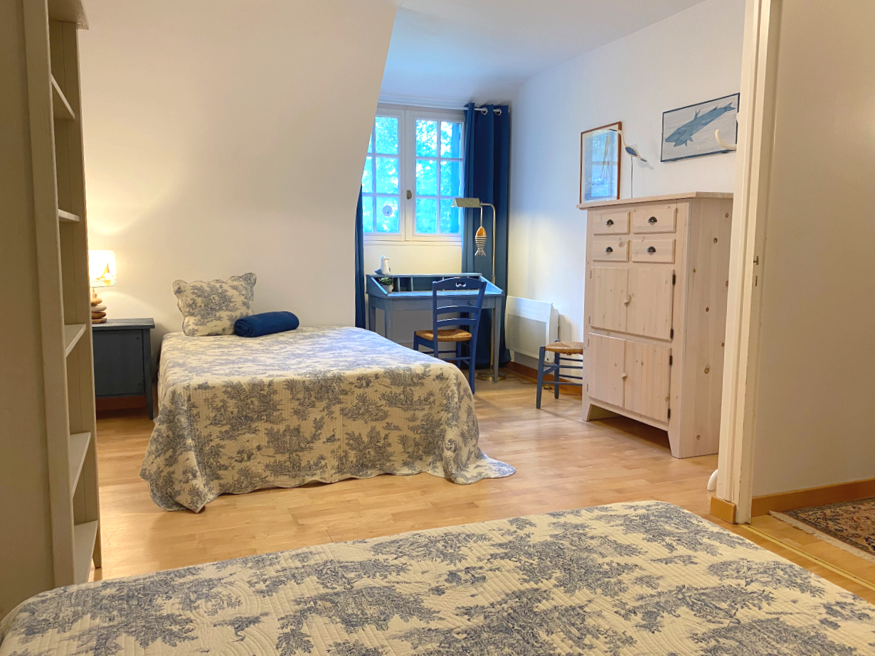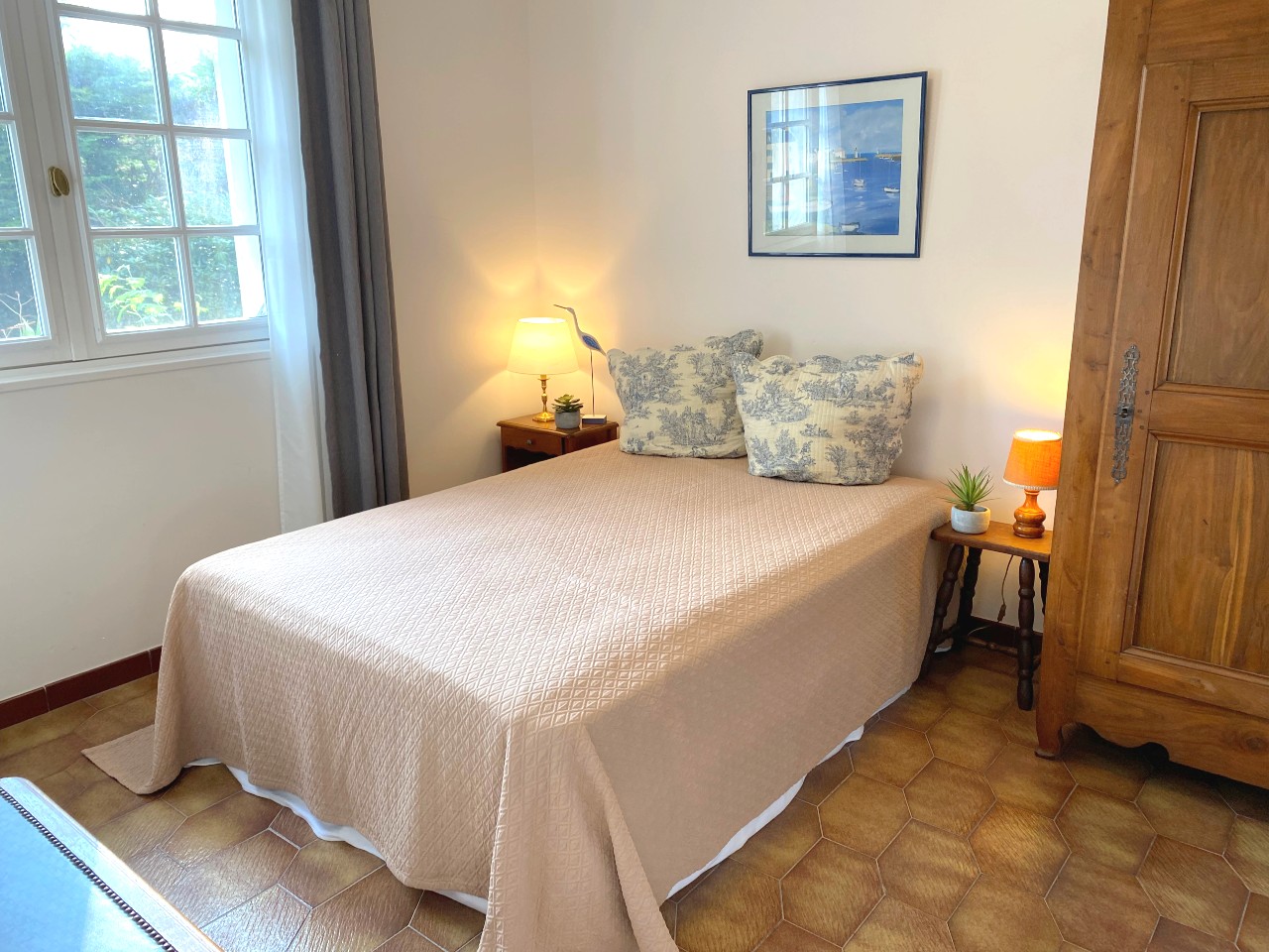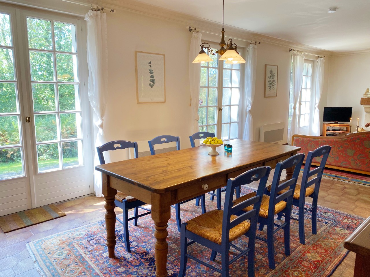 Das reetgedeckte Haus bietet gehobenen Komfort und ist liebevoll mit bretonischen Möbeln eingerichtet. Um das Haus herum liegen drei Terrassen und einen sehr ausgedehnter Garten mit alten Bäumen, Sitzbänken und einer Schaukel.